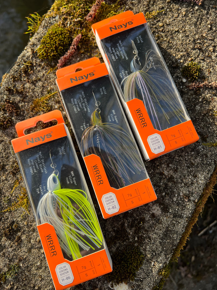 Le Nays WRRR est un bladed jig efficace en récupération linéaire, stop-and-go ou jigging. Son anneau sur la palette limite les herbiers et sa spirale assure une fixation parfaite du trailer.