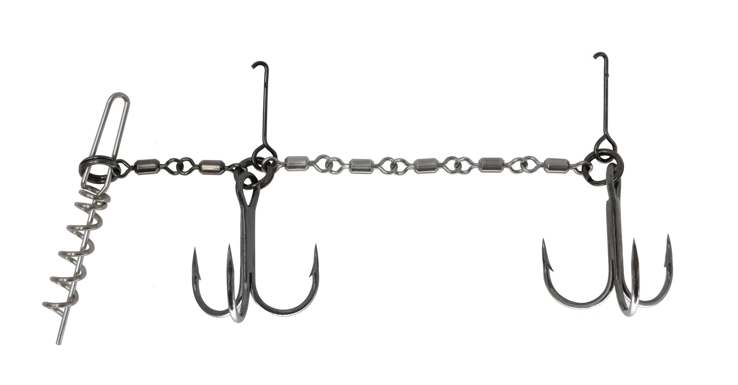 Ce montage mise sur l’efficacité. Désormais équipé de deux hameçons triples 4551 Round 1X renforcés, il permet d’armer des leurres souples dès 16 cm. Il intègre une chaîne d’émerillons ultra fiable, un Spike Pin pour une fixation sûre même dans les leurres les plus tendres, ainsi que des anneaux brisés renforcés.