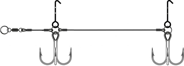 - Ce rig se compose d’un acier inoxydable 49 brins (60lb), d’anneaux brisés renforcés haut de gamme, de «pin» (design exclusif VMC) permettant de fixer fermement le montage au leurre souple et d’un émerillon pour une rotation à 360° pendant le combat
