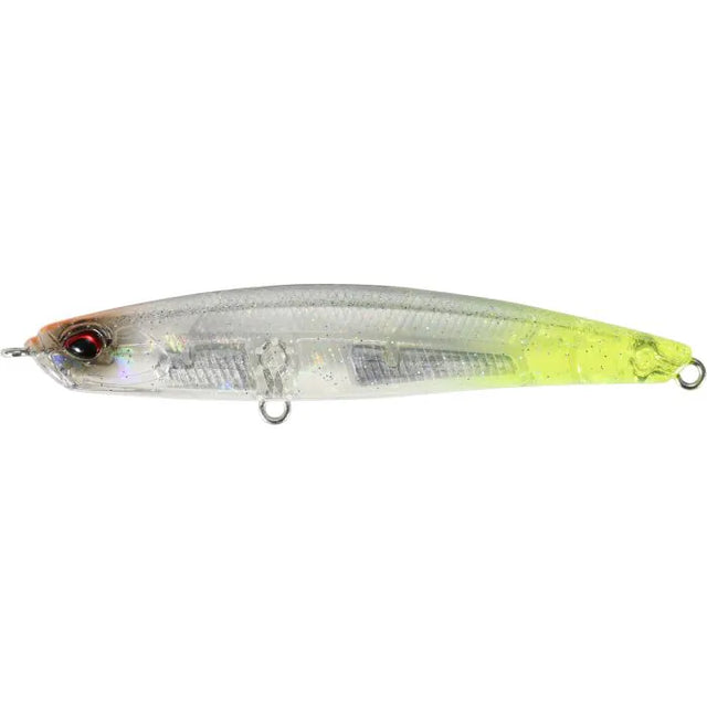 Le Bayruf Seek 85 HW est un leurre très dense conçu pour couler rapidement et prospecter efficacement des zones peu profondes, entre 20 et 80 cm. En récupération linéaire, il développe une nage ondulatoire accompagnée de larges écarts latéraux, proches d’une animation type « walking the dog ».