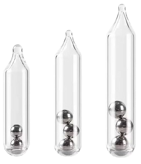 Déclinée en cinq tailles distinctes, chaque version possède ses propres caractéristiques, variant selon la longueur et le diamètre de la capsule en verre, ainsi que le nombre et la taille des billes en acier qu’elle contient.