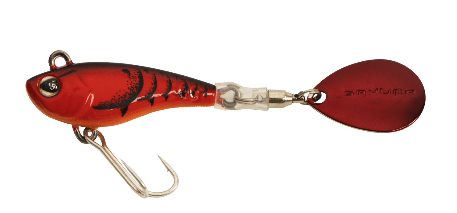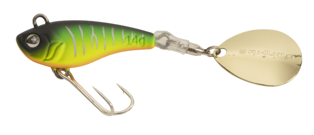 Le Tailspin Zn Sakura est un leurre compact et dense, équipé en queue d’une palette « colorado » reliée par un émerillon à billes. Une petite gaine silicone est enfilée sur l’émerillon de manière à éviter le bouclage dans l’hameçon lors des lancer ou des phases de coulée abruptes, en action de pêche.