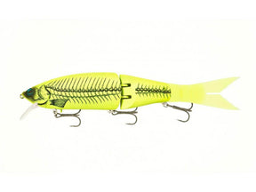 Swimbait d'une longueur totale de 210 mm, combinant un corps articulé en deux pièces avec une longue queue en silicone qui se meut de manière séduisante. Sa forme élancée assure une présence marquée et une excellente capacité d'attraction, tandis que sa configuration à trois hameçons réduit les risques de fausses touches ou de décrochage fréquents avec les grands swimbaits (un émerillon roulant est intégré à l'hameçon avant). Les articulations permettent un changement de mode entre une amplitude de mouvement large (mode flexible) et restreinte (mode serré). De plus, il est possible de choisir entre sans bavette, petite bavette, ou bavette plongeante, permettant ainsi une variété d'approches, du topwater jusqu'à une profondeur moyenne d'environ 3 mètres, grâce à la personnalisation des pièces.