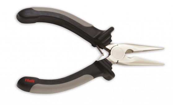 Pince compacte qui se range dans une poche ou boîte à pêche. Ressort d’ouverture pour une utilisation aisée. Poignées moulées.